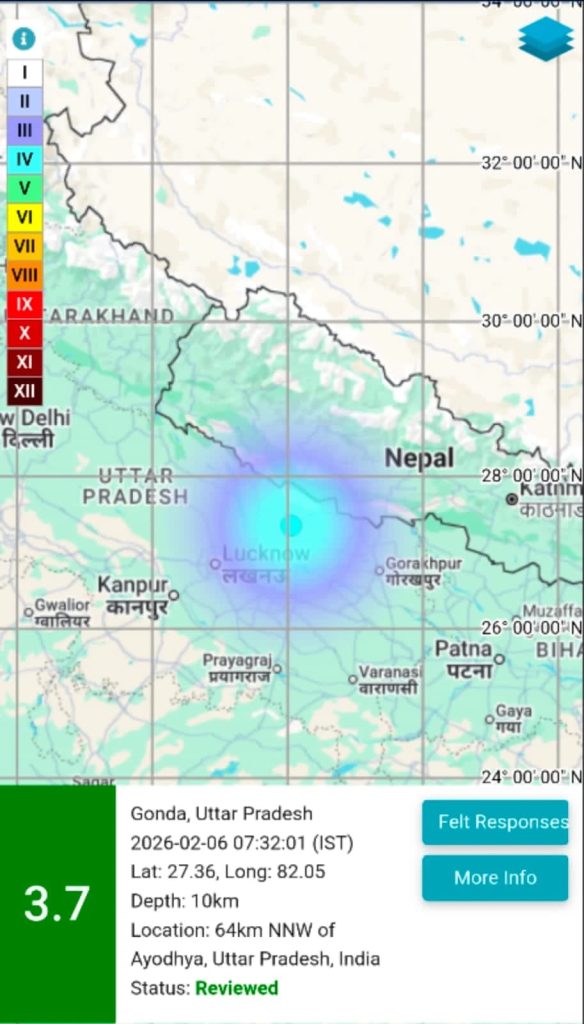 NCS के अनुसार, भूकंप का केंद्र उत्तर प्रदेश के गोंडा जिले में था। जमीन के अंदर इसकी गहराई करीब 10 किलोमीटर रही, जिसकी वजह से इसके झटके आसपास के कई जिलों में महसूस किए गए। लखनऊ के अलावा बाराबंकी, अयोध्या, बहराइच, सीतापुर और आसपास के इलाकों में भी हल्के झटके महसूस किए जाने की खबरें सामने आई हैं।