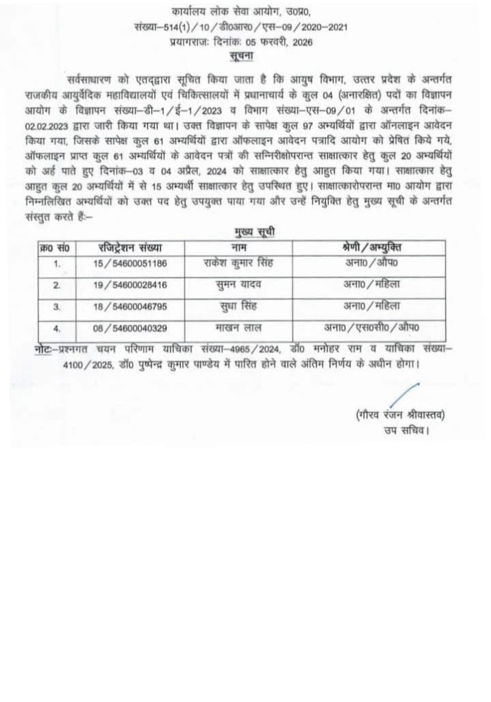 आयोग ने स्पष्ट किया कि चयन पूरी तरह पारदर्शी तरीके से किया गया है और सभी अभ्यर्थियों को समान अवसर दिया गया।