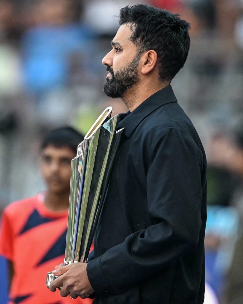 ट्रॉफी के साथ रोहित की शाही एंट्री